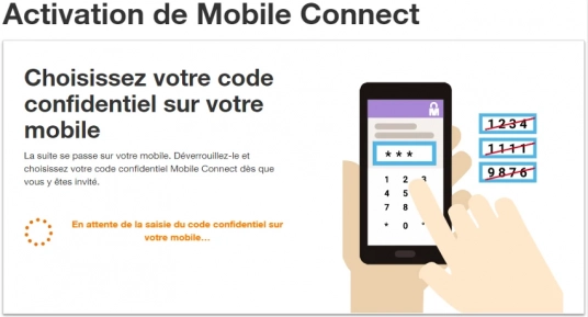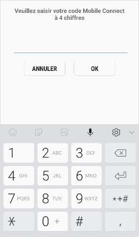 Remarque : votre code confidentiel à 4 chiffres est celui défini lors de votre inscription au service Mobile Connect.