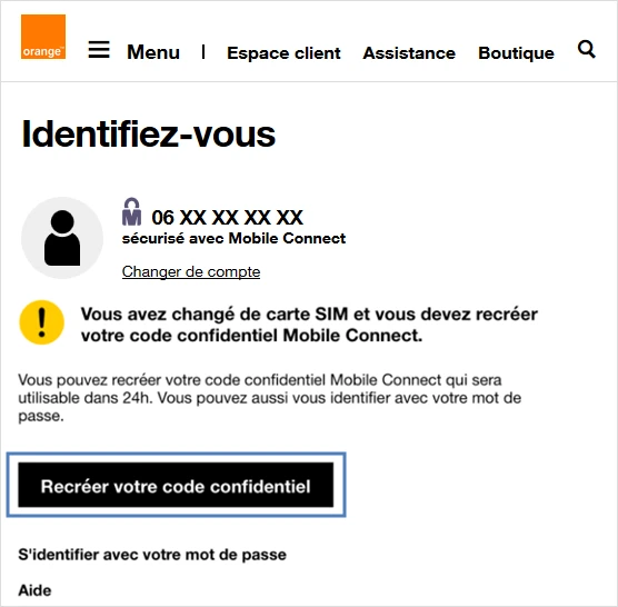 Mobile Connect : recréer le code confidentiel suite au changement de votre carte SIM