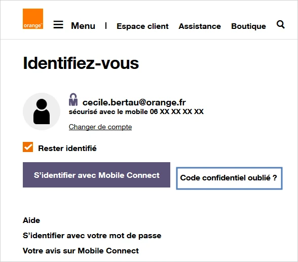 Mobile Connect : réinitialiser le code confidentiel
