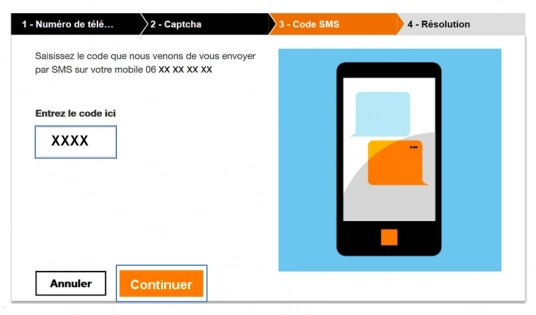 étape 5: Saisir le code reçu par SMS