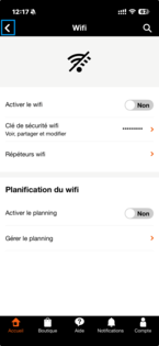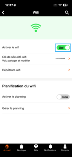 vérifier les plages horaires d'activation du wifiVous pouvez aussi programmer l’activation et la désactivation du Wifi dans l’application Orange et moi (rubrique Internet et Fixe / Votre Livebox / Wifi). Si le Wifi n’est pas actif, pensez à vérifier que vous n'avez pas programmé des plages horaires de désactivation du Wifi dans l'application Orange et moi. |