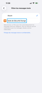 Appuyez sur Filtrer les messages texte. |
