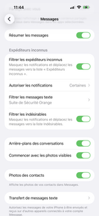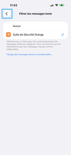 Filtrer les indésirables est activé par défaut. Le filtrage des messages est activé. Vous pouvez revenir sur l'écran d'accueil. Si la fonction est désactivée, faites glisser le curseur vers la droite pour l'activer. |