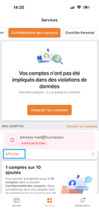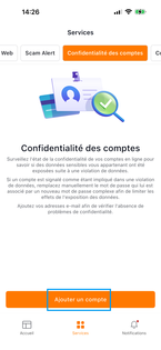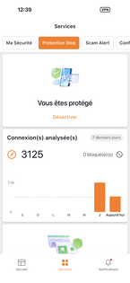 Depuis l'écran d'accueil de l'application Suite de Sécurité Orange, appuyez sur Services. |