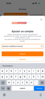 Saisissez une adresse mail (peu importe le fournisseur du mail) puis cliquez sur Ajouter. |