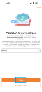 Saisissez le code reçu sur l'adresse mail concernée puis cliquez sur Valider. |