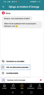 Vous pouvez retrouver l'historique de vos conversations durant 13 mois depuis :