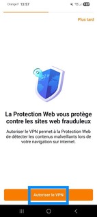Sélectionnez Autoriser (ou équivalent suivant votre version d'Android). Si vous refusez les notifications, vous ne serez pas informé en cas d’alerte liée à votre protection. |