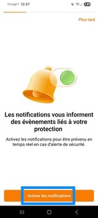 Appuyez sur Activez les notifications pour être informé en temps réel des évènements liés à votre protection. |