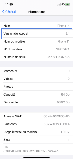 pour votre Apple iPhone 11 Pro Max ou Modifier le téléphone sélectionnéAfficher la version logicielle