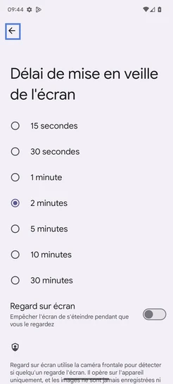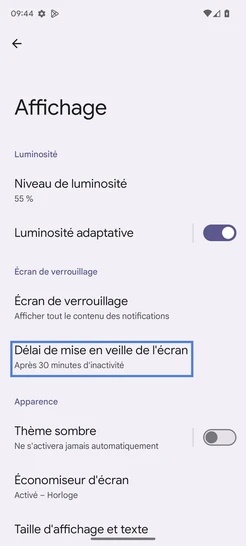 Sélectionnez Délai de mise en veille de l'écran.