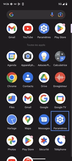 Étape 2 : Sélectionnez Paramètres.