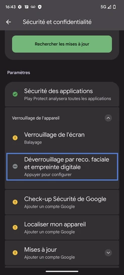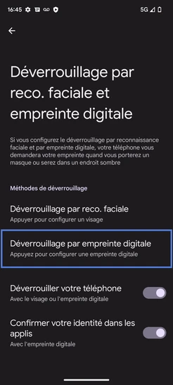 Étape 5 : Sélectionnez Déverrouillage par reco. faciale et empreinte digitale.