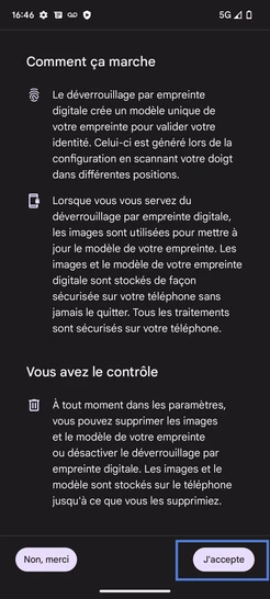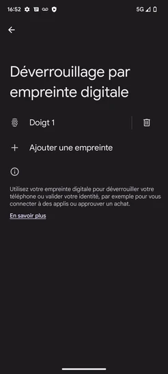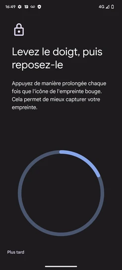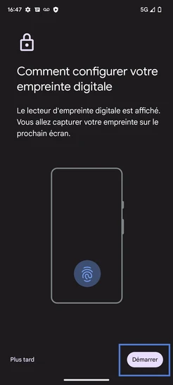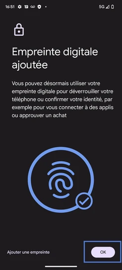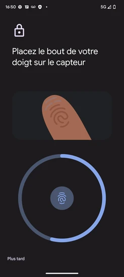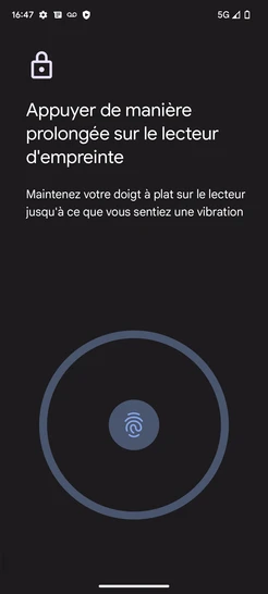 Étape 18 : Le déverrouillage de l'écran par empreinte digitale est activé.Nous sommes engagés à vous offrir une expérience sécurisée et fluide avec votre Google Pixel 7A 5G.