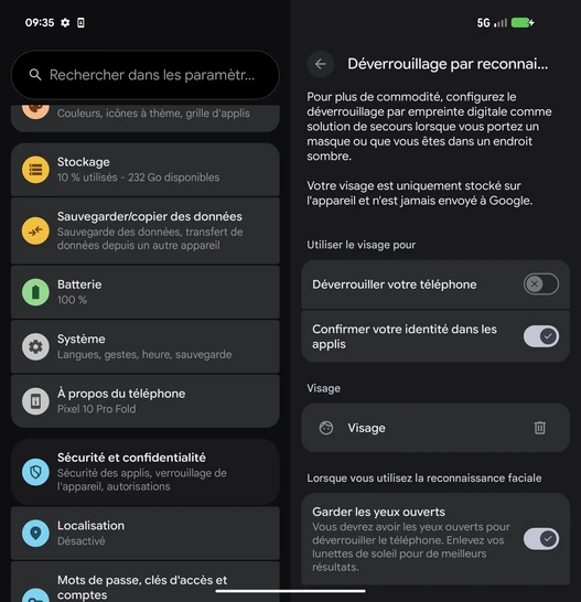 pour votre Google Pixel 9 Pro 5G ou Modifier le téléphone sélectionnéDésactiver la reconnaissance faciale