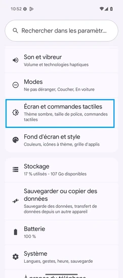 Étape 3 : Cliquez sur Écran et commandes tactiles.