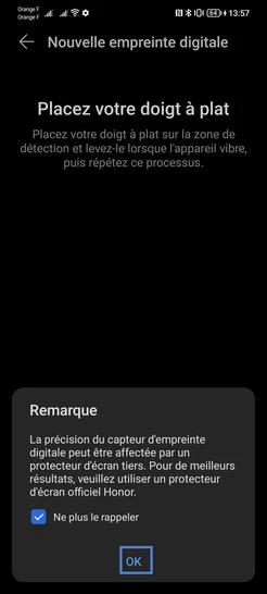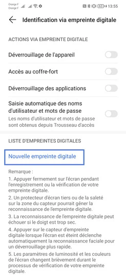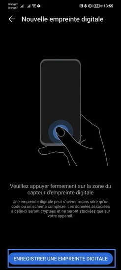 Lors de la première création d'empreinte digitale, veuillez devez définir un code de déverrouillage de l'écran et le confirmer.