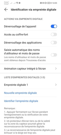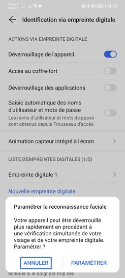 Remarque : ce code vous sera demandé si l'empreinte faciale n'est pas reconnue ou bien au démarrage après extinction.