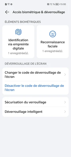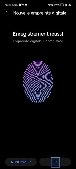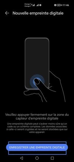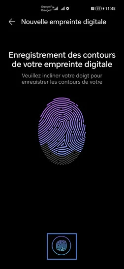 Lors de la première création d'empreinte digitale, veuillez définir un code de déverrouillage de l'écran et le confirmer.