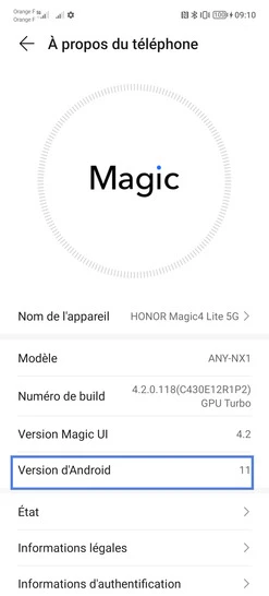pour votre Honor Magic 4 Lite 5G ou Modifier le téléphone sélectionnéAfficher la version logicielle