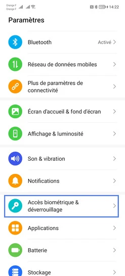 Étape 2 : Choisissez Accès biométriques & déverrouillage.