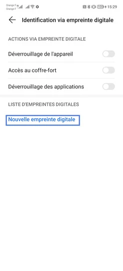 Étape 4 : Cliquez sur Nouvelle Empreinte digitale.
