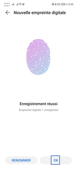 Étape 7 : Le déverrouillage par empreinte digitale est activé.
