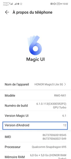 pour votre Honor Magic5 Lite 5G ou Modifier le téléphone sélectionnéAfficher la version logicielle