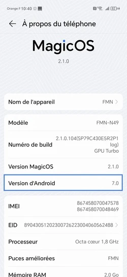 pour votre Honor Magic6 Pro 5G ou Modifier le téléphone sélectionnéAfficher la version logicielle