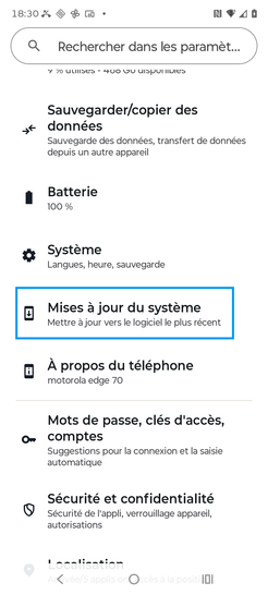 pour votre Motorola Razr50 5G ou Modifier le téléphone sélectionnéMettre à jour la version logicielle