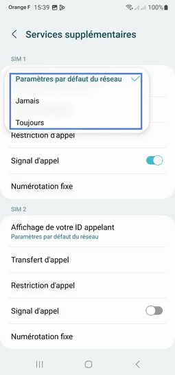 pour votre Samsung Galaxy A03s ou Modifier le téléphone sélectionnéPrésenter ou masquer votre numéro d'appel