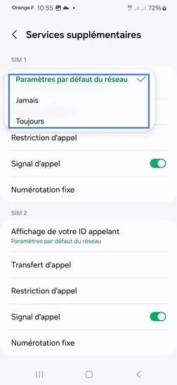 pour votre Samsung Galaxy A04s ou Modifier le téléphone sélectionnéPrésenter ou masquer votre numéro d'appel