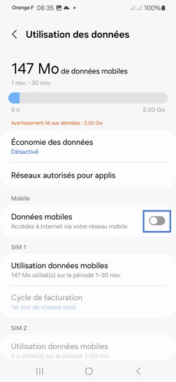 Activer ou désactiver les données mobile en 6 étapes difficulté Débutant