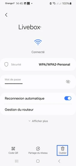 pour votre Samsung Galaxy A13 5G ou Modifier le téléphone sélectionnéSupprimer une connexion wifi