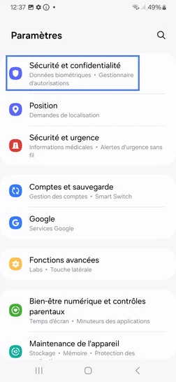 Étape 3 : Sélectionnez Sécurité et confidentialité.