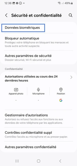 Étape 4 : Choisissez Données biométriques.