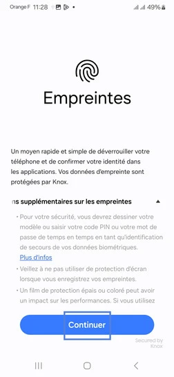 Étape 6 : Prenez connaissance des informations relatives à la prise d'Empreintes puis allez sur Continuer.