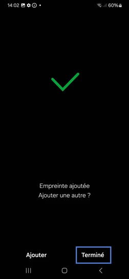 Étape 11 : Enregistrez l'empreinte avec Terminé.