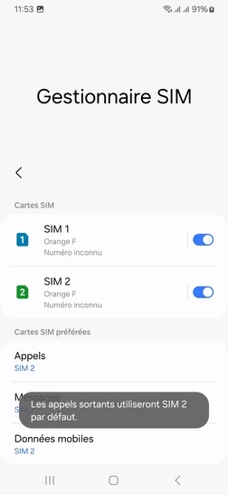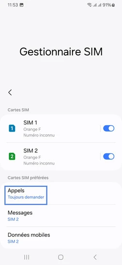pour votre Samsung Galaxy A25 5G ou Modifier le téléphone sélectionnéChoisir la carte SIM pour les appels
