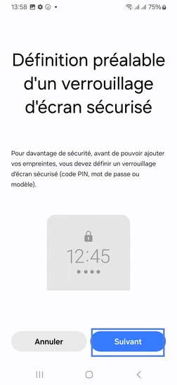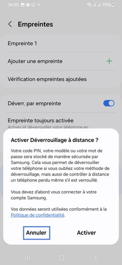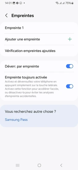 pour votre Samsung Galaxy A25 5G ou Modifier le téléphone sélectionnéEnregistrer une empreinte digitale