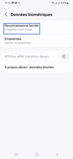 Étape 5 : Allez sur Reconnaissance faciale.