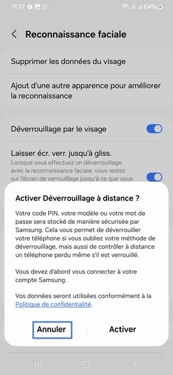 Étape 9 : Activer Déverrouillage à distance, allez sur Annuler.