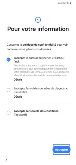 pour votre Samsung Galaxy A25 5G ou Modifier le téléphone sélectionnéMettre en route votre mobile pour la première fois