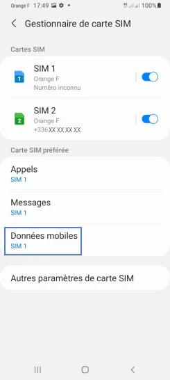 pour votre Samsung Galaxy A32 5G ou Modifier le téléphone sélectionnéChoisir la carte SIM pour les données mobile