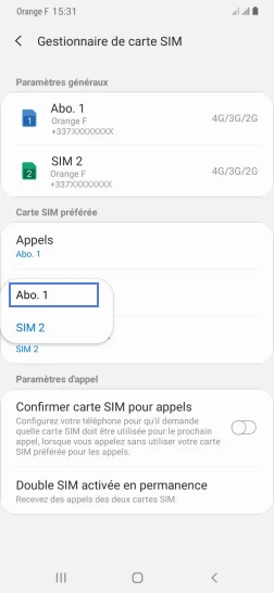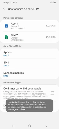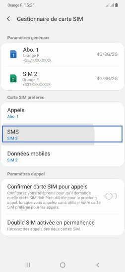 pour votre Samsung Galaxy A40 ou Modifier le téléphone sélectionnéChoisir la carte SIM pour les SMS