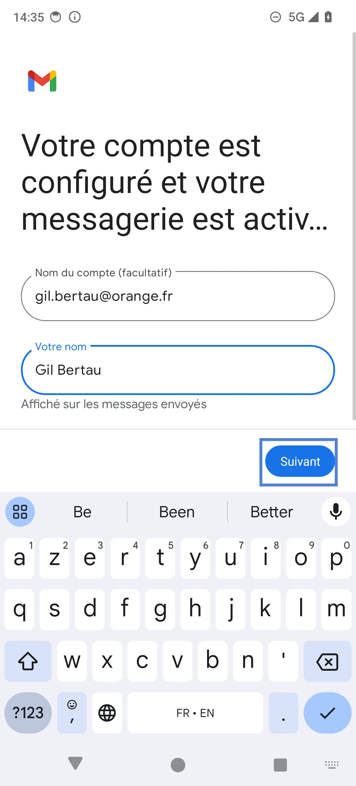 pour votre Samsung Galaxy A40 ou Modifier le téléphone sélectionnéConfigurer une boite mail