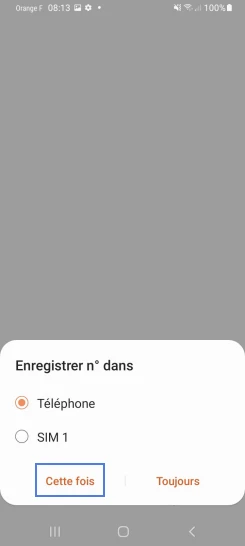 Étape 4 : Sélectionnez la mémoire d’enregistrement du contactChoisissez la mémoire du Téléphone (dans notre exemple).Faites Cette fois.