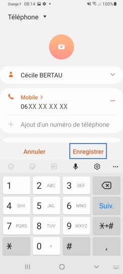 Étape 5 : Saisissez les coordonnées du contact puis cliquez sur Enregistrer pour valider.