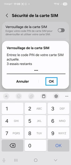 pour votre Samsung Galaxy A53 5G ou Modifier le téléphone sélectionnéActiver le code PIN