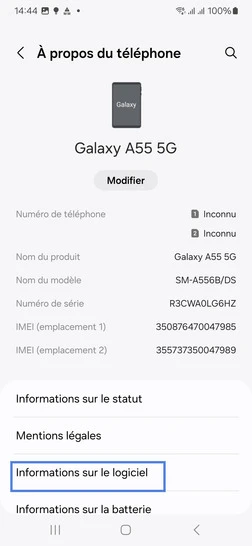pour votre Samsung Galaxy A55 5G ou Modifier le téléphone sélectionnéAfficher la version logicielle